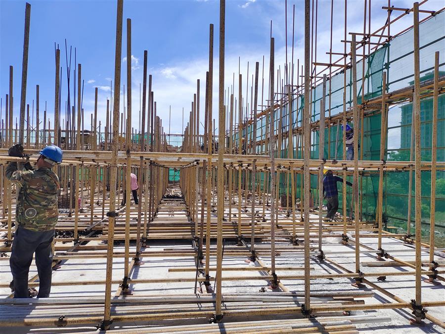 在項目現(xiàn)場,每天有50多名工人頂著高溫,相互配合,有條不紊地進(jìn)行鋼筋加工、綁扎鋼筋、混凝土澆筑等工作。為了趕工期,他們時常加班加點(diǎn)工作到深夜,同時還認(rèn)真按照工藝標(biāo)準(zhǔn)逐條逐項落實(shí)每一項細(xì)節(jié),嚴(yán)把工藝質(zhì)量。