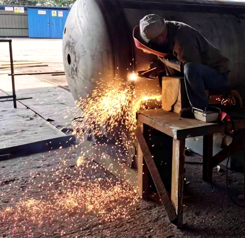 因節(jié)前承接的廣西柳鋼環(huán)保公司鋼渣廠1#廠房氣窗及3-11#柱屋面鋼結(jié)構(gòu)與彩瓦更換工程的鋼結(jié)構(gòu)預(yù)制加工、東莞市鵬錦機(jī)械科技有限公司15臺(tái)壓力容器制作需要在春節(jié)后交貨,壓力容器制造廠生產(chǎn)車間的施工人員、管理人員在大年初四就開(kāi)始進(jìn)入了緊張繁忙的工作狀態(tài)。焊接、打磨相互銜接,作業(yè)有序,全力推進(jìn)設(shè)備趕制工作,現(xiàn)場(chǎng)好不熱鬧。工人們表示,能高質(zhì)量、高效率完成好制作任務(wù),也是一種快樂(lè)。