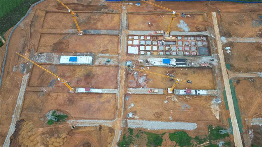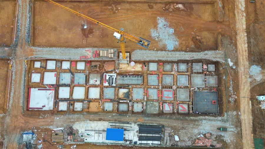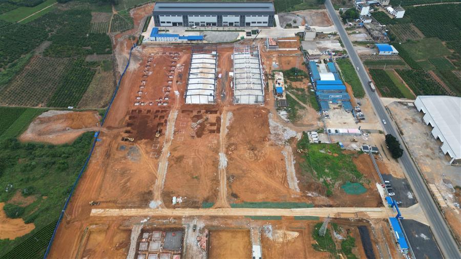 目前,該項目設備房消防水池外架搭設、模板安裝已完成,4號廠房側面檁條安裝完成,5號廠房屋面檁條安裝完成50%,6號樓基礎承臺已完成,4號樓地基處理注漿完成70%等。