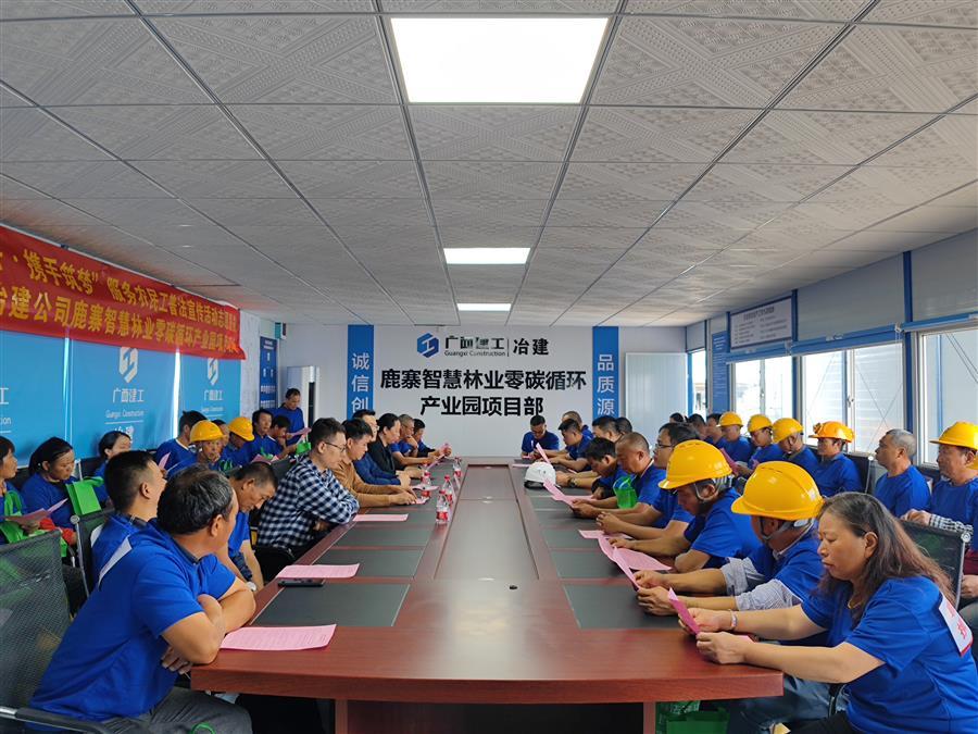 柳州市總工會(huì)、廣西正泰和律師事務(wù)所、公司工會(huì)、第九分公司、設(shè)備安裝分公司相關(guān)人員及項(xiàng)目現(xiàn)場管理人員、農(nóng)民工近140人參加。