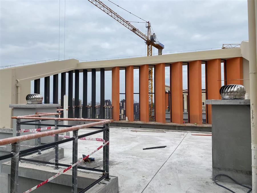 北投時代(二期)1#、2#、3#、5#、6#樓、北側(cè)大門及地下室工程項目總建筑面積為12.5萬㎡,地下2層,最大建筑高度為97.6m。目前,鋁合金門窗、陽臺欄桿安裝已完成工程量的80%,砌體工程、室內(nèi)抹灰、頂棚膩子、屋面構(gòu)架涂料已完成,5#、6#樓標準層住戶交付樣板已完成。