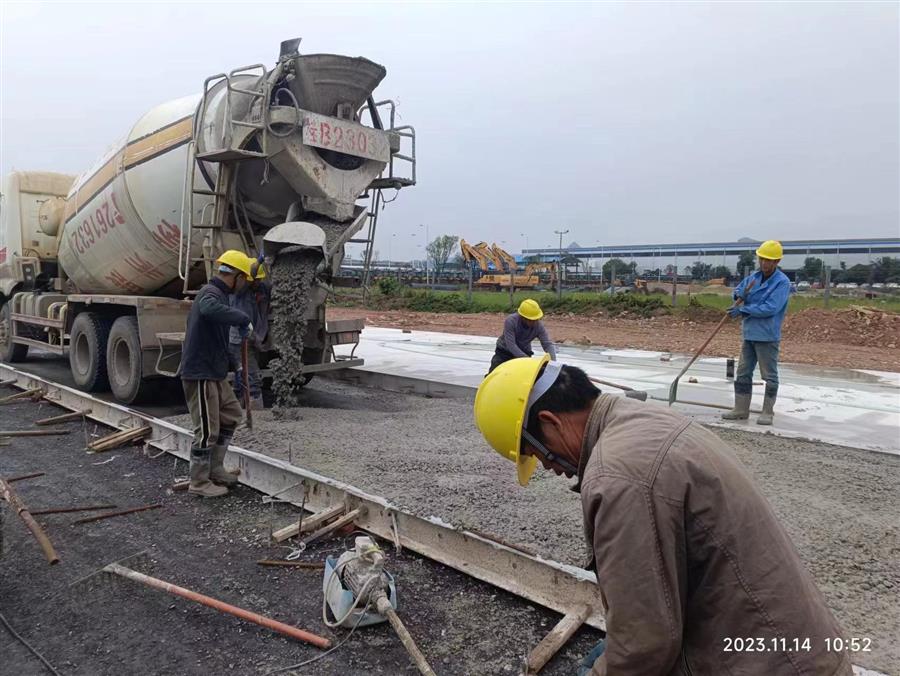 河西物流園路網(wǎng)工程—經(jīng)一路、經(jīng)六路項目現(xiàn)場,工人們正在緊張有序地開展各項工作,項目部積極協(xié)調(diào)解決施工現(xiàn)場出現(xiàn)的各類困難,全力保障工程穩(wěn)步開展。目前,項目進(jìn)度已完成40.9%,經(jīng)一路部分施工用地為從和平路至百飯路的700米,現(xiàn)已完成其中300米的砼道路施工,其余400米施工至第二層水穩(wěn);電力管溝施工、鐵塔與電纜均已完成安裝。