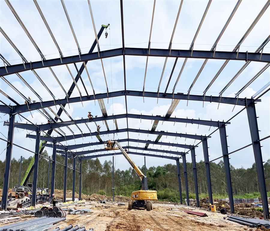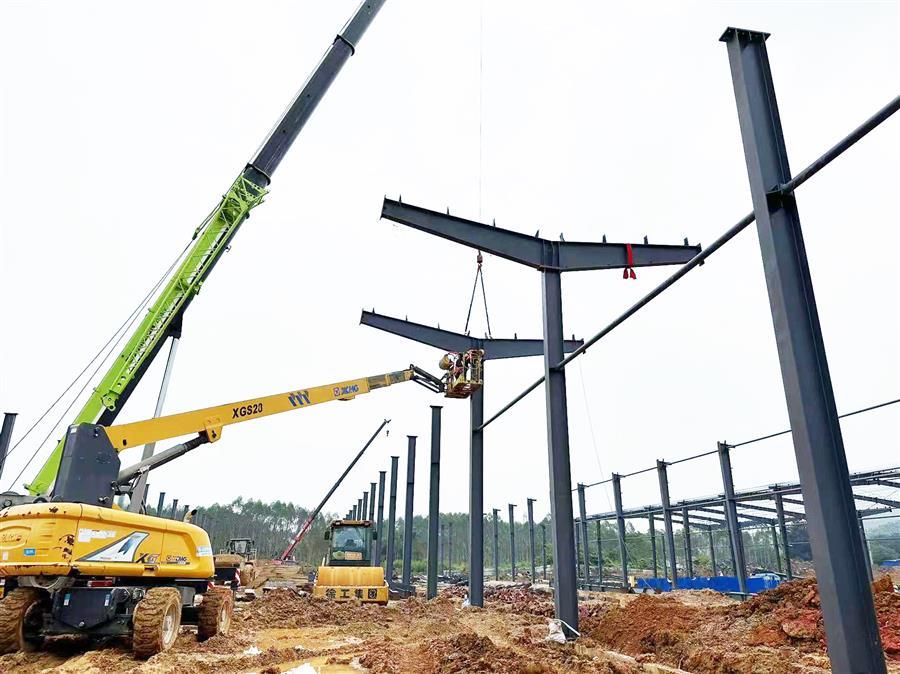 項目開工以來,為加快建設進度,項目部嚴格按照公司相關要求進行施工管理,克服重重困難,制定科學的施工組織計劃,由專員監(jiān)督指揮施工。該項目占地面積約2萬平方米,總建筑面積1.2萬平方米,主要建設一棟鋼架結構標準廠房,配套建設道路、圍墻、綠化、電氣、消防及給排水等設施。目前已完成基礎承臺及地腳螺栓的預埋,鋼結構安裝完成40%,配套建設施工內(nèi)容完成30%。