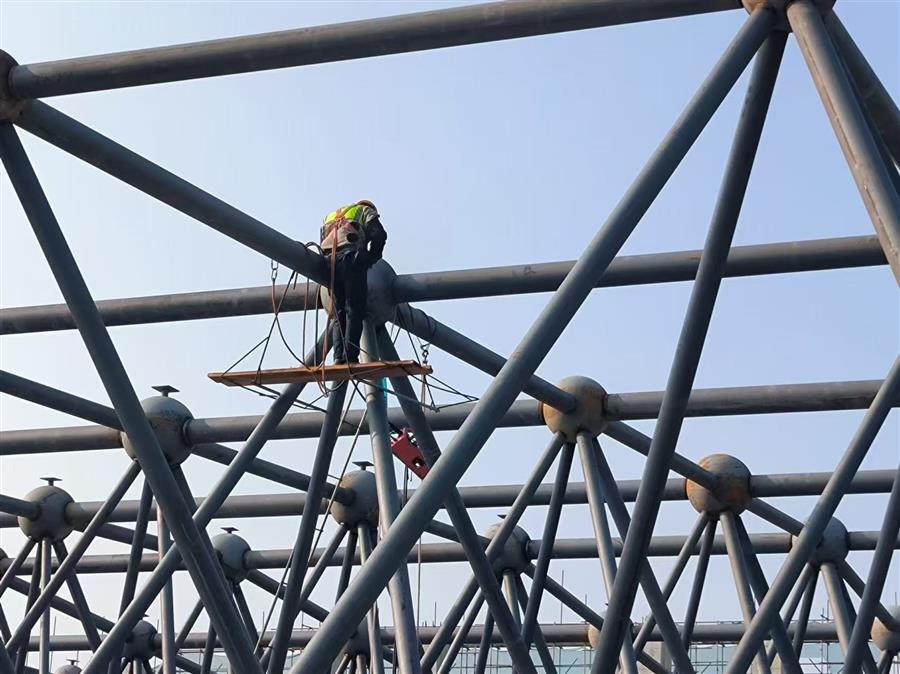 項目總建筑面積4.46萬平方米,建設(shè)內(nèi)容為文化會展中心和英德茶文化博物館(含紅茶研發(fā)中心、檢測中心和交易中心)等。目前,項目正在進行網(wǎng)架拼裝、加焊、焊接囗打磨、鋼球刷漆等工作,鋼結(jié)構(gòu)施工進度為65%。