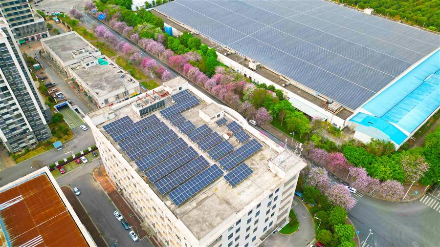 該項(xiàng)目施工內(nèi)容包含光伏基礎(chǔ)施工、支架系統(tǒng)安裝、光伏組件鋪設(shè)、逆變器及并網(wǎng)計(jì)量柜等配套電氣設(shè)備安裝、接地防雷系統(tǒng)施工、電纜敷設(shè)與橋架安裝等全部工程。項(xiàng)目總裝機(jī)容量2792.79kWp,采用4774片585Wp單晶硅光伏組件,配置110kW逆變器16臺(tái)、50kW逆變器1臺(tái)、100kW逆變器8臺(tái),共設(shè)7個(gè)并網(wǎng)點(diǎn),采用“自發(fā)自用、余電上網(wǎng)”模式,年發(fā)電量約267.27萬kWh。