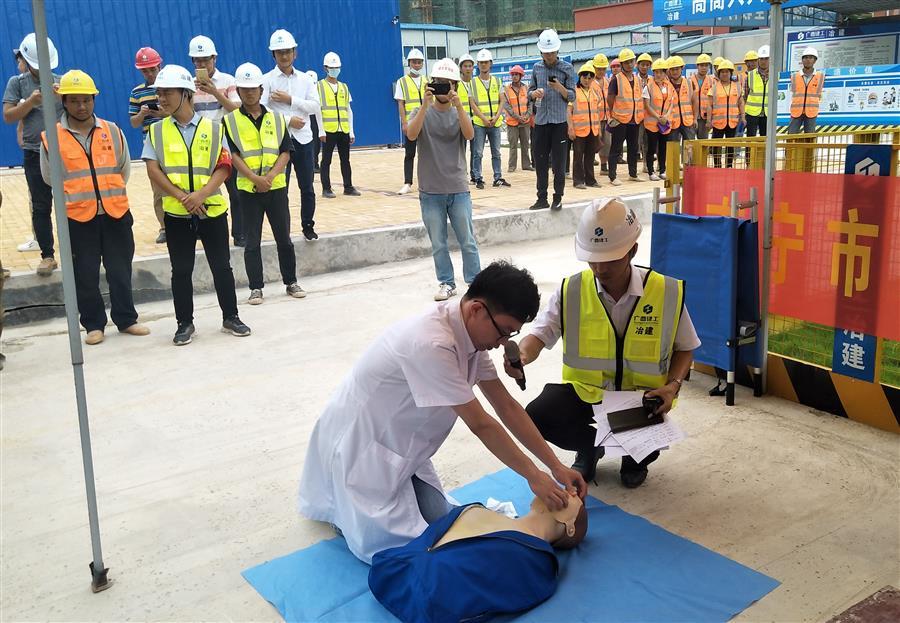 為了切實(shí)加強(qiáng)項(xiàng)目部安全管理工作,提升應(yīng)急救援水平,提高員工安全防患意識(shí)和自救互救能力,結(jié)合“安全生產(chǎn)月”活動(dòng)要求,6月14日下午,由桂海分公司承建的南寧市江南區(qū)人民醫(yī)院二期工程項(xiàng)目部開展了綜合應(yīng)急演練活動(dòng)。