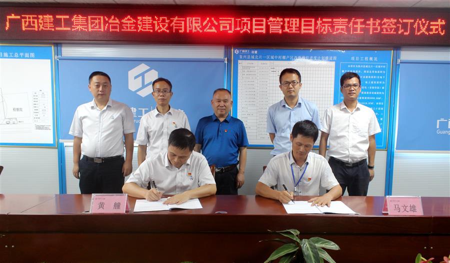近日,公司項(xiàng)目管理目標(biāo)責(zé)任書簽訂儀式在象州縣城北片一區(qū)城中村棚戶區(qū)改造項(xiàng)目(一期)項(xiàng)目部舉行。公司副總經(jīng)理唐峰,總經(jīng)理助理、副總工程師陳冠東及公司相關(guān)處室、分公司負(fù)責(zé)人參加。