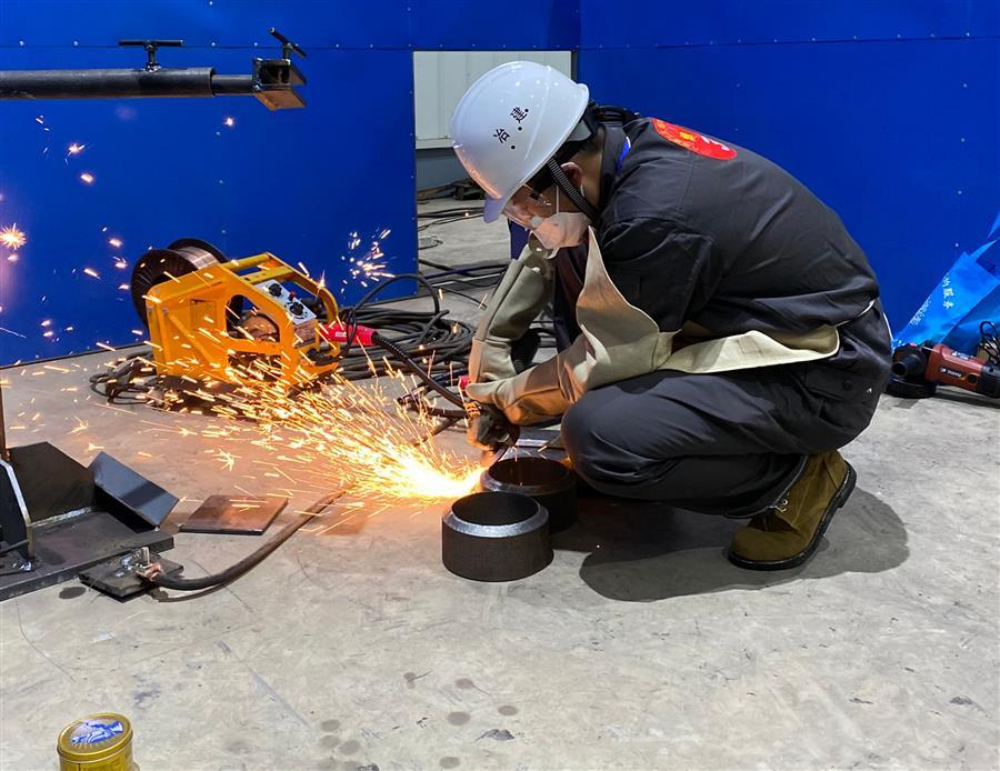 雖然比賽現(xiàn)場(chǎng)下著小雨,但是比賽氛圍依舊十分熱烈,選手們熟練地操作著各類工具,按照施工工序出色地完成了鋼筋綁扎、磚塊砌筑、材料焊接等比賽項(xiàng)目。