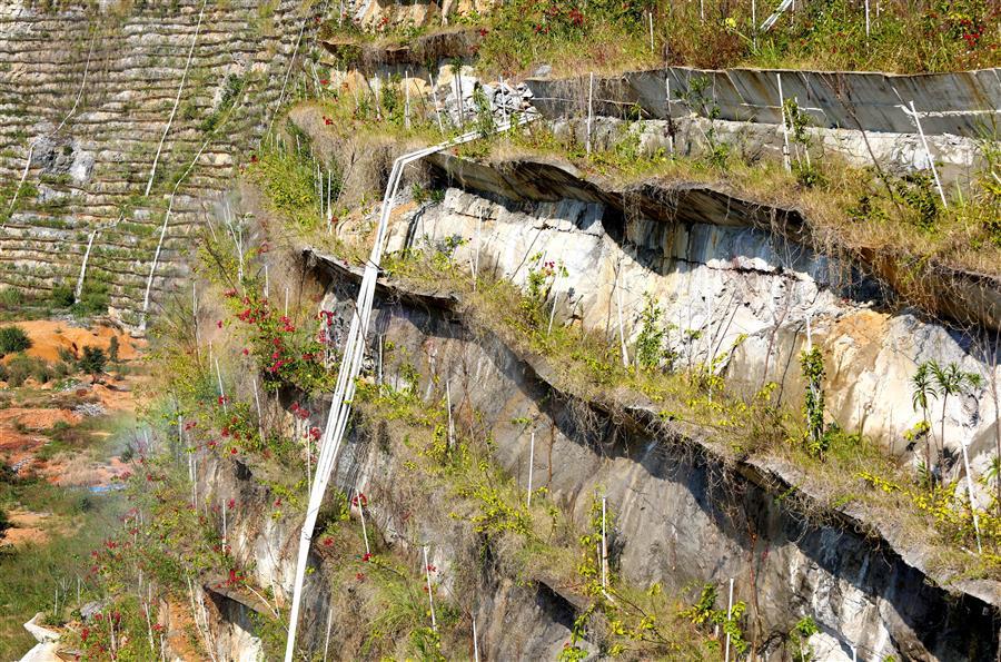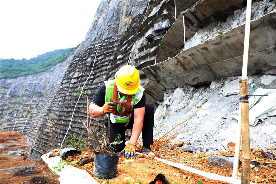 一直以來(lái),公司積極踐行習(xí)總書記提出的“綠水青山就是金山銀山”的理念,致力于綠色發(fā)展,努力為柳州生態(tài)文明建設(shè)貢獻(xiàn)力量。2018年9月26日,樓梯山采石場(chǎng)山體復(fù)綠工程開工,采石場(chǎng)山體治理面積22.5萬(wàn)平方米,施工采取在陡壁上布置擋土板,形成V形槽,回填泥土后種植紫薇、夾竹桃、爬墻虎、三角梅等進(jìn)行綠化。