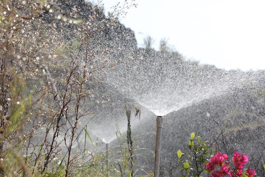 2021年12月19日,在桂華分公司承建的柳州市樓梯山采石場(chǎng)山體復(fù)綠工程項(xiàng)目現(xiàn)場(chǎng),幾名工人護(hù)理綠植。