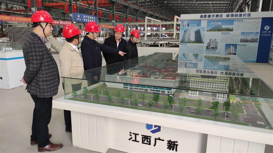 在江西廣新建筑產(chǎn)業(yè)有限公司,蒙勝益與江西廣新公司董事長、總經(jīng)理黃平等參觀裝配式建筑產(chǎn)業(yè)基地,了解江西廣新公司裝配式產(chǎn)品生產(chǎn)、工藝流程等情況。在交流座談中,雙方達成共識,希望能共同加強溝通交流,創(chuàng)新合作模式,實現(xiàn)雙贏。