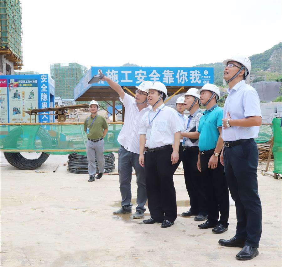 7月6日,廣西建工集團有限責任公司副總經理陳禮松率檢查組到廣西建工集團冶金建設有限公司承建的麗景嘉苑1#~9#樓及地下室、社區(qū)衛(wèi)生服務中心項目開展2018年上半年安全生產大檢查,冶建公司黨委書記、董事長歐志永陪同檢查。