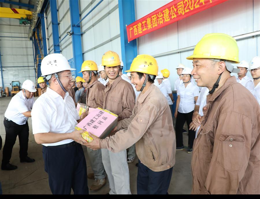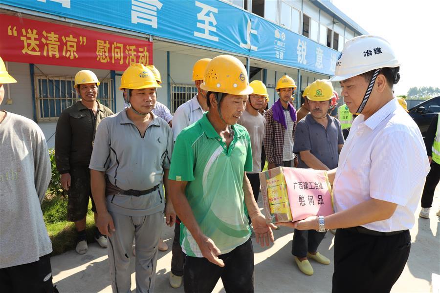 8月7日,冶建公司董事長、黨委書記覃振華,總經(jīng)理、黨委副書記蒙勝益分別到壓力容器制造廠、柳州市柳東新區(qū)明德小學(xué)項目開展“送清涼”慰問活動。