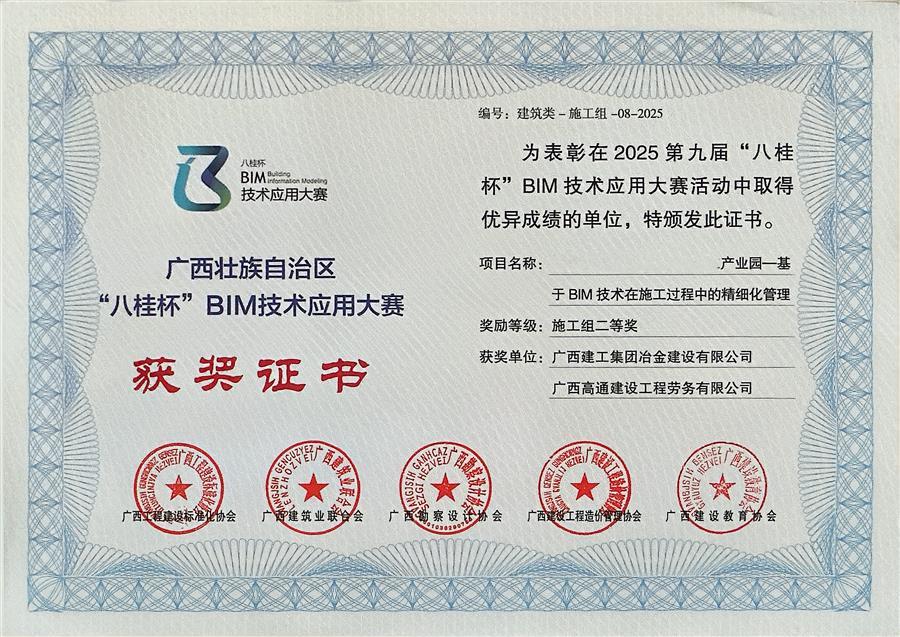 3月20日,2026年全區(qū)建筑信息模型(BIM)應(yīng)用交流會暨第九屆“八桂杯”BIM技術(shù)應(yīng)用大賽頒獎在柳州舉行。冶建公司基礎(chǔ)分公司申報的一課題,憑借出色的BIM技術(shù)應(yīng)用水平與管理成效,榮獲施工組建筑類二等獎。