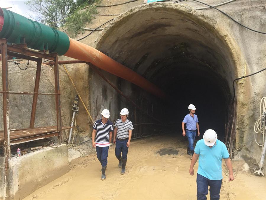 廖副總一行首先實地察看了隧洞進(jìn)口、3#支洞、出洞口等項目的施工進(jìn)展情況,并進(jìn)洞仔細(xì)觀察和了解掌子面的圍巖地質(zhì)條件與開挖情況,認(rèn)真聽取項目負(fù)責(zé)人關(guān)于當(dāng)前工程建設(shè)的有關(guān)匯報。