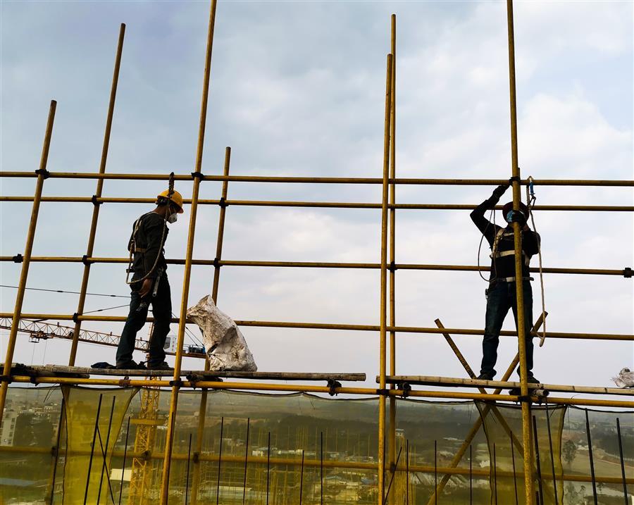 在中房綠景二期項目現場,機器轟鳴,不同工種的工人正在緊張有序開工,一幅熱火朝天的景象替代了往日的寂靜。