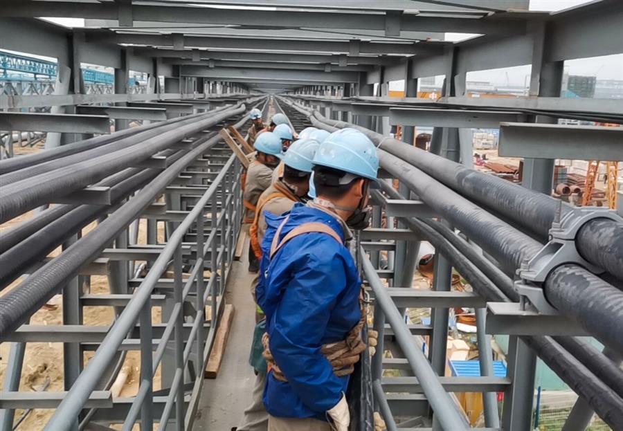 在防城港鋼鐵基地項(xiàng)目(一期)動力系統(tǒng)電力設(shè)施工程——10kV電力電纜敷設(shè)項(xiàng)目施工現(xiàn)場,工人們各司其職、齊心協(xié)力,努力推進(jìn)項(xiàng)目建設(shè)。