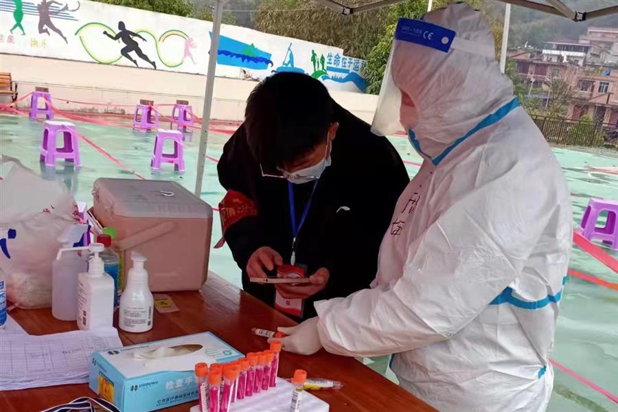 2月7日,阮斌在百色市田東縣印茶鎮(zhèn)那板村六內(nèi)屯青年志愿者隊(duì)參加志愿者工作。他每天除了協(xié)助醫(yī)務(wù)人員進(jìn)行核酸檢測,還要與其他志愿者在村口站崗,仔細(xì)檢查每一位村民的兩碼并測量體溫。遇到不配合工作的老人,他還會(huì)耐心解釋當(dāng)前疫情防控政策,勸說他們不要離鄉(xiāng)走動(dòng),配合防疫工作人員做好疫情防控工作。不站崗時(shí),阮斌會(huì)和其他青年志愿者一起上門宣傳疫情防護(hù)知識(shí),幫助村民做核酸檢測前的信息錄入。有些老人不會(huì)使用手機(jī),阮斌便耐心將操作流程演示給老人看,再讓老人自行操作一次,遇到老人忘記操作的步驟時(shí),阮斌會(huì)一次又一次地演示,直到老人可以記住全部操作流程。