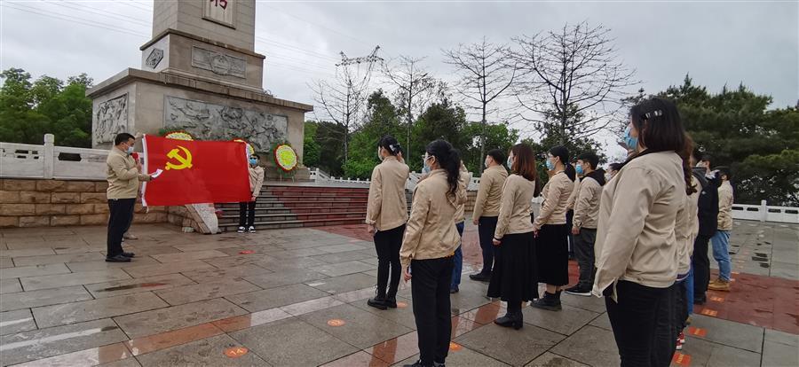 在莊嚴(yán)肅穆的烈士紀(jì)念碑前,全體人員滿懷崇敬肅立默哀,深切緬懷革命先輩們的豐功偉績,深情瞻仰烈士紀(jì)念碑。隨后,全體黨員在紀(jì)念碑前整齊列隊,面對黨旗,舉起右拳莊嚴(yán)重溫入黨誓詞。宣誓結(jié)束,全體人員在紀(jì)念碑前向革命烈士獻上鮮花,寄托哀思。
