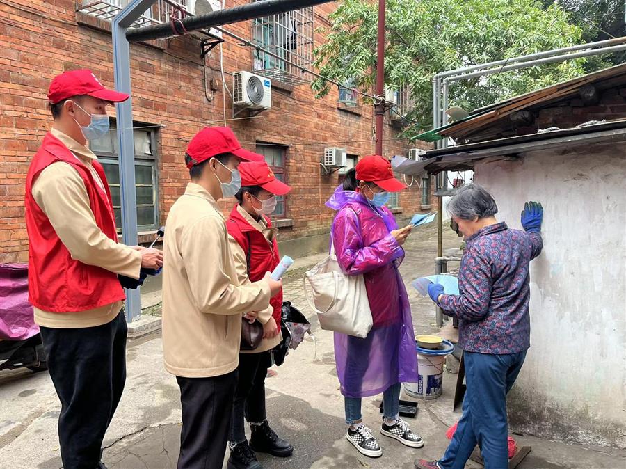 活動中,志愿者們深入街頭巷尾,對北雀社區(qū)轄區(qū)內道路的廢棄物、雜草等進行清理。經過志愿者們的共同努力,轄區(qū)環(huán)境面貌煥然一新。隨后,21名志愿者分為10個小組,深入轄區(qū)內的居民家中,開展創(chuàng)城、防艾知識宣傳。