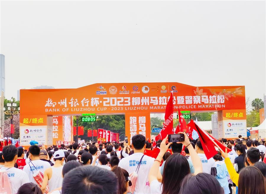 4月9日上午7:30,柳州銀行杯·2023柳州馬拉松暨警察馬拉松在柳州市民廣場(chǎng)鳴槍開跑。上萬名參賽選手用奔跑和速度感受魅力柳州。