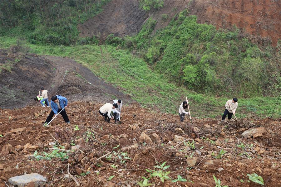 活動現(xiàn)場,青年志愿者分組分片區(qū)開展植樹活動。各小組團員青年分工協(xié)作、默契配合,鏟土挖坑、立苗填土,個個熱情高漲、干勁十足,活動現(xiàn)場氣氛熱烈。經(jīng)過大家熱火朝天的忙碌,一排排新種樹苗有序“落根”,山坡上煥發(fā)出盎然生機。