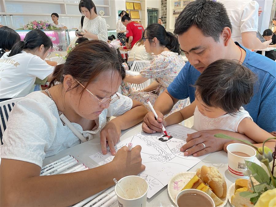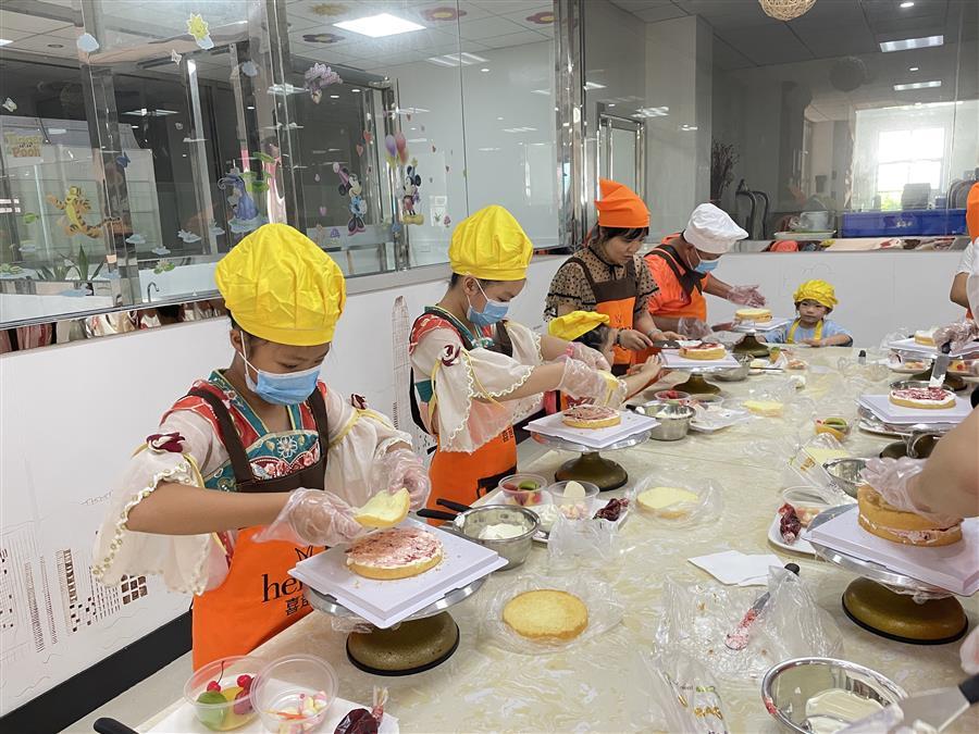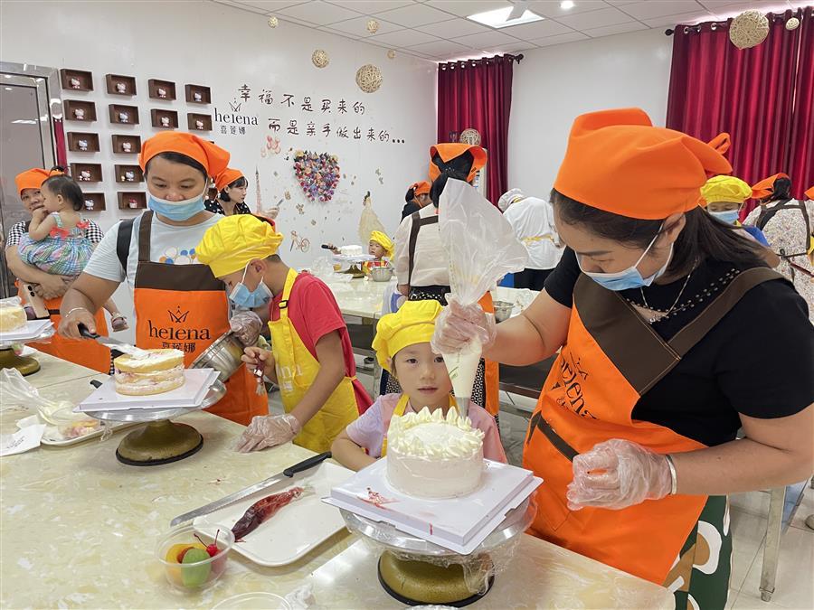 活動(dòng)現(xiàn)場(chǎng),家長(zhǎng)和孩子們聆聽(tīng)了紅色詩(shī)歌朗誦,現(xiàn)場(chǎng)共同繪制了主題畫作。并在講解員的帶領(lǐng)下參觀了中央工廠,了解了糕點(diǎn)生產(chǎn)過(guò)程。參觀后,大家一起觀看專業(yè)糕點(diǎn)師的現(xiàn)場(chǎng)教學(xué)并體驗(yàn)了蛋糕制作。一個(gè)小時(shí)后,一個(gè)個(gè)造型別致、想象奇特、富有童趣的親子蛋糕新鮮出爐。家長(zhǎng)與小朋友們手捧自己制作的蛋糕拍照,現(xiàn)場(chǎng)氛圍其樂(lè)融融。