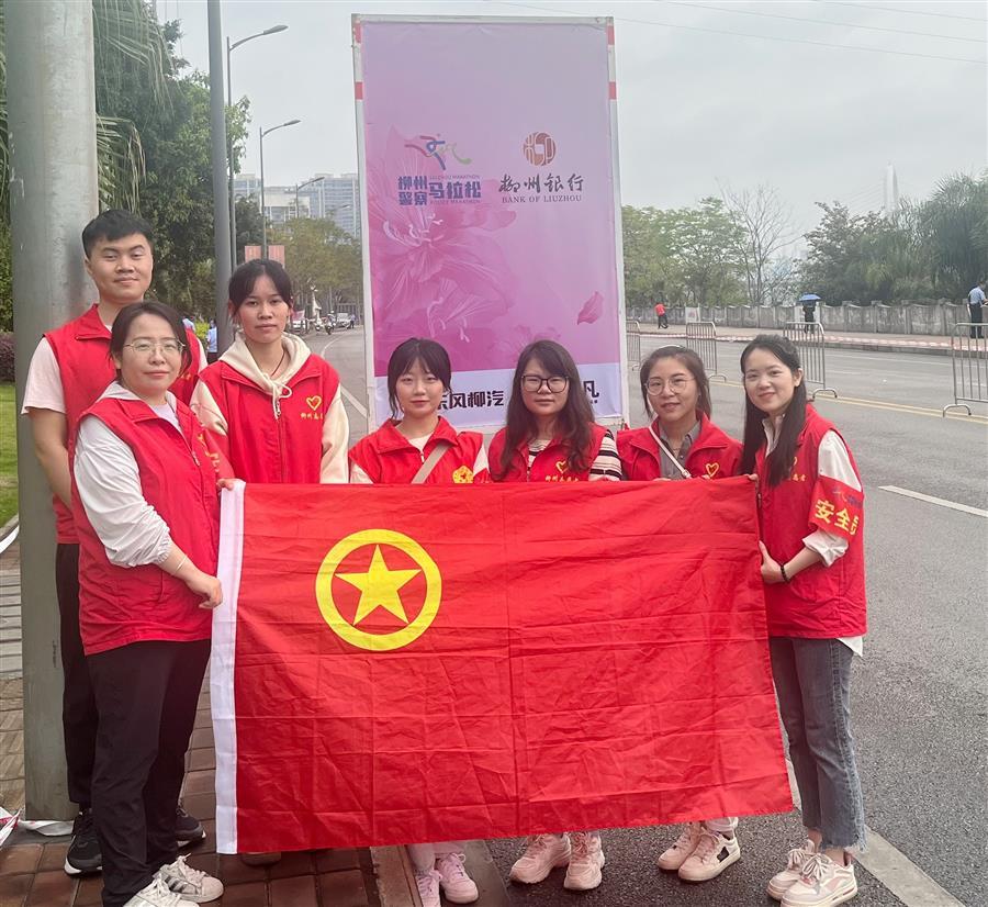 在半程馬拉松11km的鋅品廠泵站至凱旋大道路口路段賽道兩側(cè),冶建公司志愿服務(wù)隊(duì)熱情奉獻(xiàn),在賽段沿途配合安保人員做好秩序維護(hù)工作,為柳州馬拉松賽事保駕護(hù)航,成為馬拉松賽道上一道亮麗的風(fēng)景線!