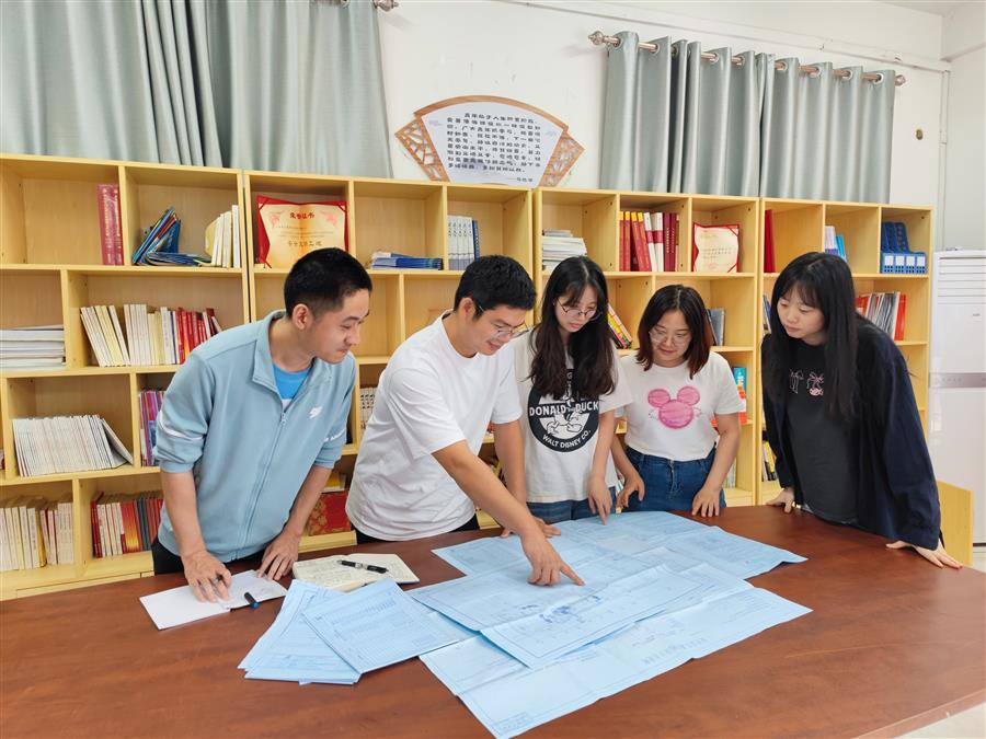 李年歡帶領團隊研究圖紙